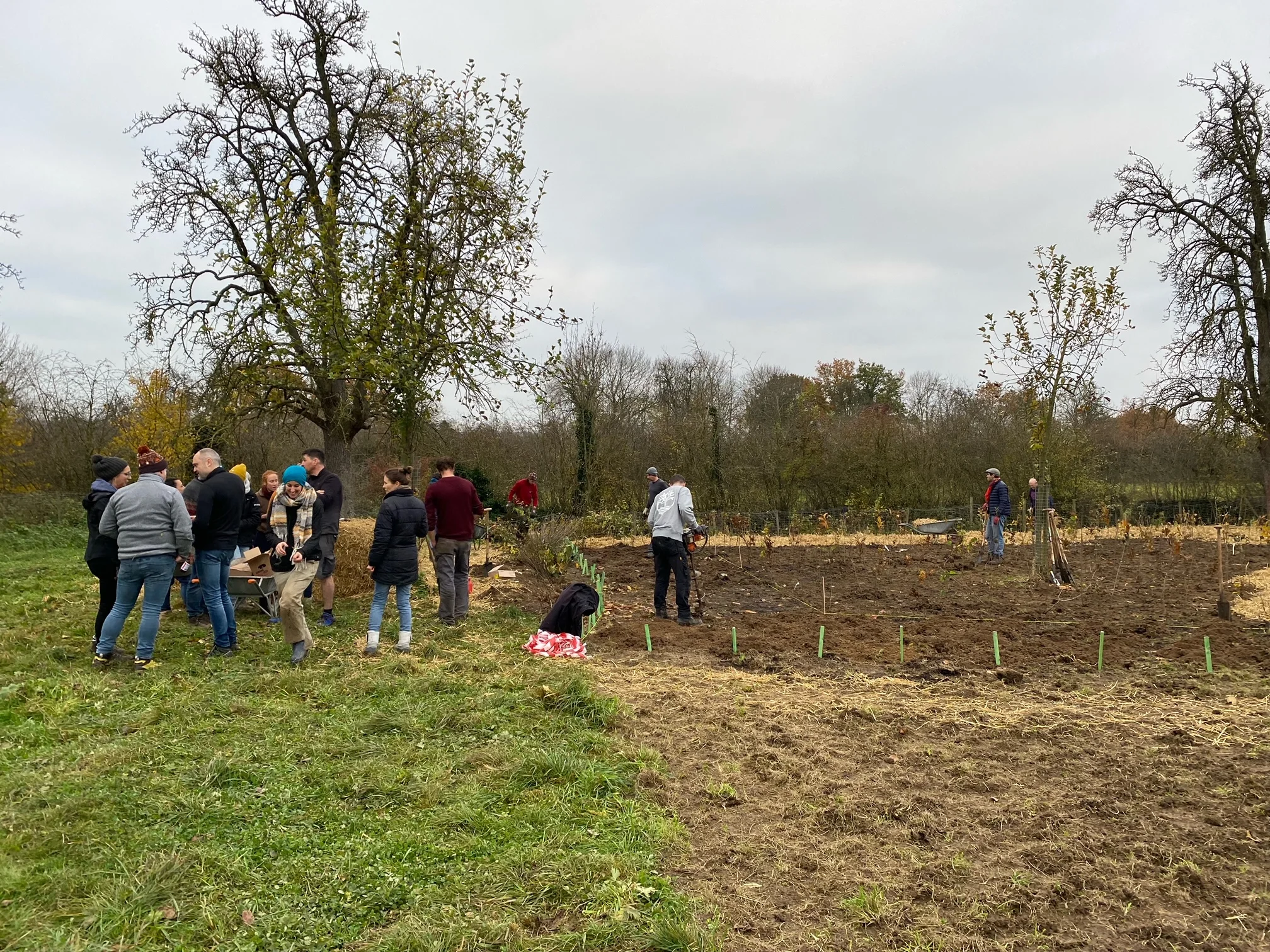 La plantation de cette forêt de 1000 m2 constitue le prolongement d’un projet test réalisé en 2021. L’idée consistait à réaliser, dans une prairie, deux petites forêts très bio-diversifiées : l’une à croissance rapide ( selon la méthode « Myawaki ») et l’autre suivant une méthode de plantation plus « classique ».